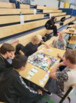 „Das ist so entspannend“ – Hörte man die kleinen und auch großen Besucher an einem Stand zum Bemalen von Glückssteinen, während sich beim „Cornhole“ Spannung aufbaute, das Eckige ins Runde zu treffen. „Wussten Sie, dass die Kinderarbeit in Deutschland erst 1960 verboten wurde?“- Eine 7. Klasse klärte die Besucher mit einem Kahoot auf und an verschiedenen Stationen konnte man dann nachempfinden, was es bedeutet Silber zu polieren, Holz zu holen oder Schuhe zu schnüren. Leckere Obstspieße an einem anderen Stand sorgten Dank der Spendenfreudigkeit der Besucher für die Unterstützung des Unicef Projektes „Klasse in der Kiste“, durch das Schulmaterial in Entwicklungsländer und Kriegsgebiete geliefert wird. „Die Tochter einer Kollegin hat bei ihrem sozialen Jahr in Tansania mit so einer Kiste gearbeitet“, erklärte eine Besucherin.