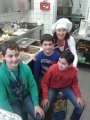 Schulhof tragen zu können. Der Korpus besteht aus Pappe bzw. Wellpappe und die Ummantelung befestigt das Ganze. Zeitungspapier und Kleister mit einer Endschicht aus weißem Papier – das ist leicht, stabil und umweltfreundlich.