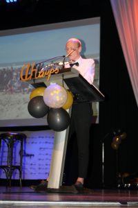 „Champs, die Kurzform für Champions gibt es in verschiedenen Sportarten“, erklärte Schulleiter Martin May, als er im gelben Trikot die Bühne betrat, um den Abiturientia herzlich zur letzten erfolgreich bewältigten Etappe der „GHG- Rundfahrt“ zu gratulieren. „Viele anstrengende Trainingseinheiten und Etappen liegen hinter Ihnen. Nach 6 Jahren in der Sekundarstufe I ging es mit dem Q in der Tasche zu den letzten Etappen mit steilen Berganstiegen, rasanten Talfahrten, eingestreuten Zeitwertungen und kraftraubenden Endspurts, doch jetzt haben Sie es geschafft und dazu gratuliere ich Ihnen ganz herzlich“, betonte der Schulleiter. Sein Dank für die kontinuierliche Begleitung auf diesem Weg ging neben den Eltern, Lehrkräften und dem Schulpersonal auch an den Abteilungsleiter Herrn Großmann und die beiden Baratungslehrer Frau Kauffmann und Herrn Bauckhage, die er als erfolgreiches Rennstallteam für Motivation und Mobilisierung ehrte.