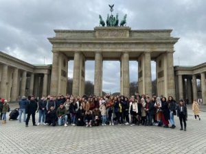 Wie in jedem Jahr machte sich auch die Q2 des Abiturjahrganges 2020 auf zur Studienreise nach Berlin. Hierzu nutzten die GeschichtslehrerInnen Frau Perl und Herr Rexhausen sowie die BeratungslehrerInnen des Jahrgangs, Frau Kluttig und Herr Heinrichs, die Tage nach Karneval, um mit den SchülerInnen die lange Reise nach Berlin anzugehen. Diese ist Teil des Schulprogramms und dient in erster Linie der historisch-politischen Bildung der SchülerInnen. Bereits am ersten Tag besuchten sie zu Fuß die Gedenkstätte Berliner Mauer in der Bernauer Straße und verschafften sich einen Überblick über die ehemalige Grenzanlage, die Ost- und Westberlin teilte. „Mir war gar nicht klar, dass die Grenze aus zwei Teilen bestand“ , wurde es einigen SchülerInnen erst vor Ort deutlich.