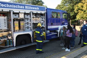das THW Aachen unsere Schule und stellte verschiedene Ausbildungsmöglichkeiten, das Ehrenamt und das freiwillige soziale Jahr bei dem THW vor. Die Schüler und Schülerinnen hatten die Möglichkeit, hautnah die Arbeit des THW mitzuerleben, Fragen zu stellen und mit zwei Auszubildenden in direkten Kontakt zu treten.