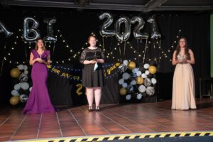 Ein feierlicher Einzug der Abiturienten mit musikalischer Untermalung leitete den Nachmittag in den festlich dekorierten Veranstaltungssaal ein. Im Vorfeld der Veranstaltung waren alle Schüler und Schülerinnen und teilnehmende Eltern getestet worden. „Der Aufwand war groß, aber hat sich gelohnt“, erklärte die Beratungslehrerin der Stufe, Sibel Yilanci. Die Schüler David Duodo, Edanur Durgut und Zoe Vranken führten mit wortgewandter Moderation durch das Programm und „rockten“, laut Publikum, „die Bühne“. Sie freuten sich, unter den Eltern, Lehrerinnen und Lehrern im Publikum auch den Bürgermeister der Stadt Alsdorf, Herrn Alfred Sonders, sowie die Vorsitzende der Elternpflegschaft, Frau Sonja Gottschalk und auch Herrn Johannes Burggraef von der Caritas begrüßen zu dürfen.