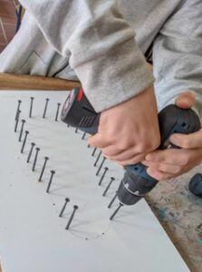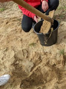 Schnell war die Gruppe damit beim Thema Mobilität. Wie kommst du zur Schule? Fährst du mit dem Rad oder mit dem Bus…? Es entstanden in Beton gegossene Fußstapfen, die mit Kieselsteinen gestaltet wurden. Der ganze Jahrgang war aufgefordert, Kieselsteine mitzubringen, damit das Projekt gelingen konnte.