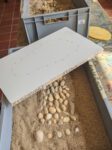 Die Steine wurden nach Farben und Größe sortiert und dann ging es gemeinsam mit Elke Kohlrautz ans Werk. Schablonen wurden angefertigt und Formen gebaut, der Beton wurde angerührt und die Steine genau ausgewählt.