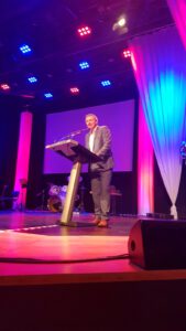 Als ersten Redner bat das Moderatorenteam den Schulleiter, Herrn Ralf Bauckhage auf die Bühne, der den