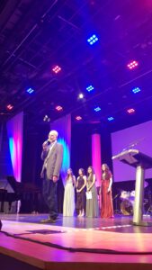 Die Gustav-Heinemann-Gesamtschule Alsdorf verabschiedete sich mit diesem Jahrgang auch von vier sehr engagierten Mitgliedern des Schülerchores. „Wir rufen nun einen Lehrer mit einer starken Aura auf die Bühne, der leider mit uns geht“, erklärte das Moderatorenteam. Mit Standing Ovations wurde der Chorleiter und langjährige Abteilungsleiter I, Herr Michael Mohr, vom Publikum auf die Bühne begleitet. Mit Melek Kudal, Fatime El Kathib, Hesna Goffin und Saskia Braun verabschiedete er vier