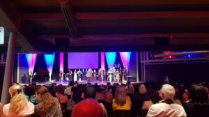 Den musikalischen Beitrag der festlichen Veranstaltung machte die Schulband, die sich aus Lehrer:innen, ehemaligen Kolleg:innen und ehemaligen Schüler:innen, teilweise in Doppelfunktion zusammensetzt. „If i can make it here, i can make it anywhere“ aus „New Yourk“ passte da ebenso gut wie „Geile Zeit“ von Juli, bei dem eine stimmgewaltige Vanessa Kather das Publikum mitriss.