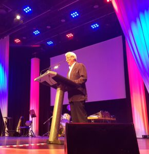 Unter tosendem Applaus betrat im Anschluss der Oberstufenleiter, Herr Herbert Großmann die Bühne. „Liebe Abiturient:innen, ihr Weg hin zur Reifeprüfung war von ganz besonderen Umständen geprägt: Schulische Veranstaltungen über den Unterricht hinausgehend, vor allem die Jahrgangsstufenfahrt nach Spanien, mussten ebenso pandemiebedingt ausfallen, wie allseits beliebte teambildende Zusammenkünfte privater Natur, die einen entscheidenden Teil im Leben eines Oberstufenschülers ausmachen und eigentlich nicht wegzudenken sind. Stattdessen hielten gänzlich neue Kommunikations- und Lernformate Einzug in ihren Schulalltag. Trotz aller neuen Unterrichtsformate haben Sie es geschafft mit größter Bravour ihre Prüfungen erfolgreich zu bewältigen“, erklärte der Leiter der Oberstufe in seiner Rede. „In den letzten Wochen des Schuljahres haben Sie ihre schriftliche und mündliche Abiturprüfung abgelegt und damit den Schlusspunkt unter ihre schulische Laufbahn gesetzt. Sie haben sich von den Rahmenbedingungen nicht demotivieren lassen und sind in ihrer Leistungsfähigkeit über alle Grenzen gegangen. Bei einige Prüfungen war klar erkennbar: Das waren zum Teil Glanzleistungen. Nicht nur profunde Sachkenntnis,sondern auch die gekonnte Darbietung der Vorträge waren von allererster Güte. Ganz besonders in den mündlichen Prüfungen sind einige von ihnen weit über bis dahin gezeigte Leistungen hinaus gegangen“, erklärte Herr Großmann unter großem Beifall des Publikums.