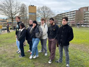 In Brunssum, der Partnerstadt Alsdorfs, fand eine ganz besondere Gedenkfeier statt. Um 14 Uhr luden Schüler:innen der weiterführenden Schule Broeklandcollege aus Hoensbroek bei Brunssum und ihr Lehrer Erik Molnar zur Gedenkfeier am „Joods Monument“ im Vijverpark als Abschluss einer Projektwoche an ihrer Schule ein, die von den Schüler:innen mitorganisiert wurde. Mit einer Zeremonie mit Kranzniederlegung, die durch Reden und Gesang begleitet wurde, wollten die Jugendlichen der Kriegsvergangenheit Brunssums erinnern.