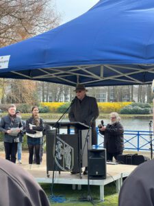 Zu den Rednern gehörte unter anderem der Zeitzeuge Jack Aldewereld, der die Gustav-Heinemann-Gesamtschule bereits im Januar besucht und von seinen Erfahrungen und Erinnerungen aus der Zeit des Holocaust erzählt hatte. In