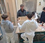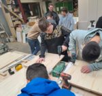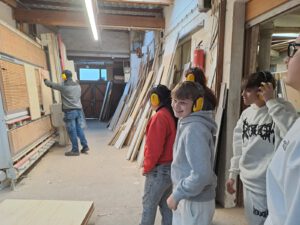 Aufgeteilt in zwei Gruppen besuchten die Schüler:innen des Ergänzungsstunden-Kurses „Sitzwürfelbau – Handwerksberufe im Bauwesen“ an zwei Tagen die Tischlerei Palmen. Nach dem Besuch des Betonwerks erhofften sich die Schüler:innen hier weitere Unterstützung für ihr eigenes Bauvorhaben. Und sie wurden nicht enttäuscht. Im Gegent