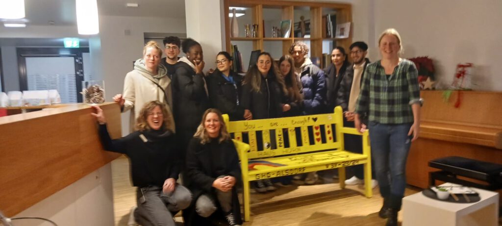 Die SV der Gustav-Heinemann-Gesamtschule-Alsdorf schenkt dem Hospiz Haus-Hörn eine „Gute-Laune-Bank“.