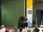 Unter der Regie von Frau Baier-Bellefroid brachte der erste Kurs das Stück „Schule steht Kopf“ auf die Bühne. Die humorvolle Darstellung einer Lehrerin, die ausschließlich Filme im Unterricht zeigt, und Schülern, die während des Unterrichts Sandwiches zubereiten und Spaß haben, sorgte für zahlreiche Lacher im Publikum. Die skurrilen Szenen des Schulalltags wurden mit viel Witz und Charme präsentiert und spiegelten auf unterhaltsame Weise die Realität wider.