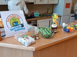 Das gesunde Frühstück im Agendacafé vor Unterrichtsbeginn ist mittlerweile ein Schüler:innenmagnet. Die Schüler:innen können sich an einem vielfältigen Buffet bedienen. Ausgewählte Produkte bieten wir dabei als Fairtrade Produkte an und schaffen somit einen attraktiven und niedrigschwelligen Zugang für unserer Schülerschaft.
