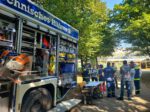 sich regelmäßig bundesweit mit anderen Schulen austauschen. Die Schilder mit der zweiten Muttersprache am Stand von Schule:Global, vertreten durch Marieke Boin Soares, gaben Anlass zu neugierigen Gesprächen auf dem Fest. Besonders die kleinen Besucher zeigten sich begeistert von der Erkundung des Einsatzwagens des THW und am Stand der Falken machten sich mutige Hände auf Entdeckungsreise in Fühlboxen, in denen Hinweise auf verschiedene Kinderrechte versteckt waren.