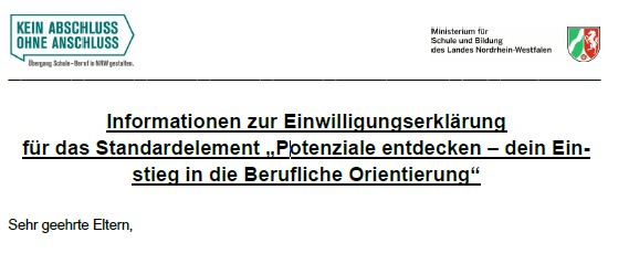 Brief des Ministeriums mit Einwilligungserklärung durch die Erziehungsberechtigten
