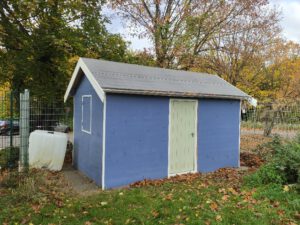 In einer ausgesetzten Ecke des Geländes fand sich Raum für einen großen Schuppen, der zusammen mit Schülerinnen